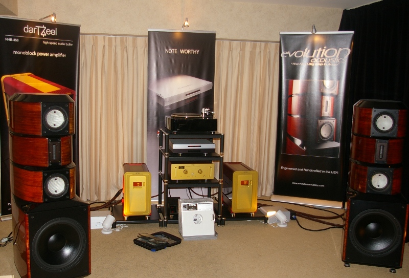ダールジールブースでは、弩級パワーアンプNHB-458を使用し、evolution acousticの大型スピーカーMMtwoを駆動し、迫力のサウンドを展開