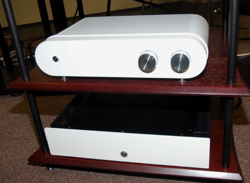 プリアンプ「SONOBA 9000S」(上)、パワーアンプ「SONOBA 1008」(下)。ともにプロトタイプ
