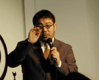 | <左>ビバリウム社長の斉藤由多加氏 <右>デモの模様 |