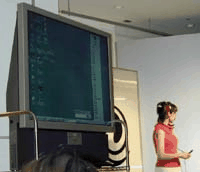 本日の発表会では、クリスマスに予定をいれていない男性が飼育するシーマンが、おともだちリストに登録されていた女性を訪れ、「クリスマスに食事でもしない?」と質問。女性が「いやだ」と答えると、「そんな冷たいこといわないでさ」と呟きながら男性のもとに帰り、結果を報告するというデモを行っていた。