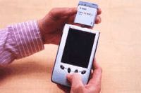 「CFE−01」は、重さ約16g、独自開発の平面アンテナを採用しフラットでスマートなデザインを実現した世界最小・最軽量(発表時データ)のデータ通信機能内蔵コンパクトフラッシュカード。電波状況は緑・赤・オレンジのLEDで表示し、通信モード状態は緑・赤・オレンジのLEDで表示し、一目で状況・状態の確認が可能となっている。