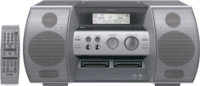 【SPEC】●スピーカー:9cm×2 ●入力端子:AUX IN(ステレオミニ)×1 ●出力端子:ヘッドホン出力(ステレオミニ)×1 ●実用最大出力:6W+6W(EIAJ) ●電源:AC100V 50/60Hz ●消費電力:電源入時:30W/スタンバイ時:3W ●最大外形寸法:460W×208H×251Dmm ●質量:6.4kg ●付属品:リモコン、単3乾電池×2(リモコン動作確認用)、AMループアンテナ、FM簡易アンテナ、電源コード