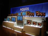 | <左>会場にはAQUOSのフルラインナップがずらり <右>シャープ(株)専務取締役 濱野稔重氏 |