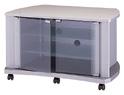 以下の3機種は、ガラスとパイプ素材をバランスよく構成した透明感のあるデザインを採用し、薄型テレビにマッチする。天板はフロストガラス、棚板はクリアガラスと2種類のガラスでデザイン性を向上させた。脚部はアルミ異型パイプにシルバーメタリック塗装仕上げ。奥行き40センチの薄型ラック。