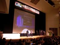 | ロバート&フランシス・フラハティ賞を山形市長より受賞する王兵監督(10月16日、山形市中央公民館) |