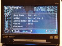 ■写真右:HD Radioを受信した画面の一例。イクリプスでは放送内容の表示を行い、ロングネームのスクロールも実現した