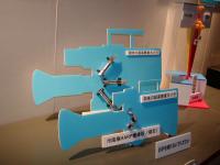 「フレキシブル有機EL」は、プラスチックフィルム状に白色発光層とカラーフィルターを形成するした、自在に曲げられる有機ELディスプレイ。曲げられるディスプレイでは、フイルムタイプの液晶ディスプレイも試作品が展示されていた。
