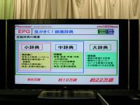 中でも「気がきく!録画辞典」機能は、従来のEPGにおけるキーワード検索の機能をさらに進化させたものであり、本機に内蔵された約22万語を登録した関連語・同義語・連想語辞典を活用し検索のヒット率を上げるというもので大変便利に使いこなすことができる。