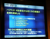 A:基本的にはHD DVDの企画に基づいたタイトルを今後リリースするという意味であろう。他のフォーマットでHDのソフトをリリースしないという、排他的なものなのかについては、私どもからは何とも言い難い。が、一方でハリウッドが「HD DVDによるシングルフォーマットが望ましい」と理解してくれたものと認識している
