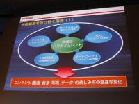 A:私は消費者の声が一番重いと考えている。交渉は現在、残念ながら中断している。色々な方から規格を統一して欲しいといわれているが、我々が0.1mmの保護層をサポートするのは困難。しかしながら、議論の中心が物理規格になるのはおかしいと思っている。なぜなら、「次世代DVDでは何ができるのか」「ディスクがどれくらいのコストで作れるのか」「ユーザーにどんなメリットをもたらすものなのか」を議論することの方が大事だと思うからだ。今後長きに渡り、消費者に何を提案できるフォーマットなのかを考えるための議論であれば、私は交渉を再開する準備をいつでも整えたいと思っている。統一を断念したわけではないことを本日ここで強調したい。当社としては規格統一のための努力を今後も惜しまないつもりだ。(藤井氏)