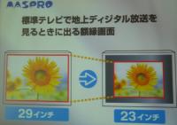また、地上デジタル放送の16対9ワイドアスペクト放送は徐々に増えてきてはいるものの、まだ50%が4対3アスペクトで両端にフレームをつけて16対9放送されている(マスプロ調べ)。例えば、4対3の29インチテレビの場合、地上デジタル放送の4対3放送は、23インチ相当の小さな画面になってしまう。そこで、DT330ではリモコンに「ズーム」ボタンを用意し、ユーザーが4対3放送を受信しているとき、その画面をテレビ全体に引き伸ばすことができる「フル画面表示機能」をつけた。