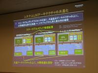 UniPhierのシステムLSIの今後の商品化については、はじめはその技術をさらに練り上げながら同社ブランドの商品に搭載して行きながら、一定の実績を得た後に2007年ごろを視野に外販を進めていく考えであるという。松下電器の商品化スケジュールについては、現状2004年5月にパナソニックオートモーティブシステムズ社製のHDDカーナビゲーションへの搭載を、続いて2005年10月発売のSDカードムービー「SDR-S100」への搭載を実現しているが、これに続くかたちで近日ワンセグ対応の携帯電話機、2006年にはホームAV機器への展開が予定されている。またUniPhierによるビジネスモデルの構築スケジュールとして、古池氏は「今後10年間に渡って、拡張性を考慮したアーキテクチャーの進化を遂げたい。UniPhierを採用していただいたクライアントに開発効率の向上と、商品差別化のキーデバイスを提供することが我々の目標。2010年にはUniPhierで1000億円のビジネスを展開できればと考えている」と語った。
