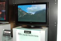 パイオニアも「世界最小」をアピールし50V型のフルHDモデルを参考出品。同社はこの50V型を来春発売する予定だ。説明員によれば「年末から年明けくらいには正式にリリースを出せるのではないか」とのことだ。現行製品の展示では、「ダイレクトカラーフィルター」や「高純度クリスタル層」、「片側駆動回路」による高い映像再現力、低消費電力性をアピールした。