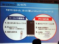“W-ZERO3”は、WILLCOM/WINDOWS/WIRELESSの“W”、携帯やPCを超えゼロから創る世界の“ZERO”、第3のコミュニケーションツールの“3”からなる言葉である、と説明するのは八剱氏。ケータイとPCの特長を持ち合わせた、まったく新しいコミュニケーションツールとしてアピールする。