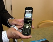 同時に、今年4月1日に本放送を開始するワンセグ放送についても、「ワンセグ連絡会」を設置し、普及促進を図る。本日の総会では、会場にKDDIの「W41H」や「W33SA」、NTTドコモの「P901iTV」、ボーダフォンの試作機などが展示され、試験放送の表示デモが行われていた。