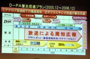 事務局が行った予算案に関する説明の中では、「アナログ放送を2011年に終了することを決めたのが2001年のこと。今年はアナログ→デジタル移行期間の折り返し地点にあたる重要な年だ」と説明。「2006年12月には3,850万世帯が地上デジタルを視聴可能になり、受信機器も普及が順調に進むと予想されるが、今後国民の理解をさらに進める必要がある」とし、具体的には、2006年度中に「2011年にアナログ放送が終了する認知度を50%以上に引き上げる」ほか、「地上デジタルテレビ放送受信機を2,000万台普及させる」ことを目標として掲げた。なお、昨年はじめに行ったアナログ放送終了時期に関する調査では、終了時期を「2011年」と正確に答えられた回答者は9.2%だったという。