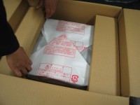 お持たせいたしました、HD-XA1本体の登場です。付属品の中箱の下に、きちんとラッピングされ、両側をダンボールで固定されています。新品のAV機器特有の香りがします。やっぱり初物はいいですね〜。