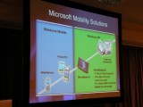 続いて壇上に立ったマイクロソフト(株)Windows本部 ビジネスWindows製品部 シニアプロダクトマネージャーの飯島圭一氏からは、UMPCのアプリケーションのデモと、日本国内における事業戦略説明が行われた。