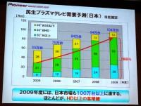 50インチ以上のモデルについても、「2009年には580万台に達し、フルHDモデルはこのうち25%、台数では150万台となる」と見込む。国内に関しては、2009年度に100万台以上に達し、そのうちのほとんどがHD以上の高精細モデルになるという。