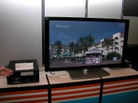 本日の会場にはBlu-rayディスク関連製品の展示コーナーも設けられ、PC/AVハードメーカーや業務機器のメーカーらが出展を行った。パイオニア(株)はBlu-rayディスクの記録・再生に対応したPC内蔵型のBD/DVDドライブ「BDR-101A」を出品し、ハイビジョン映像の出画デモを行っていた。同社はまた、このドライブの応用例としてBDレコーダーのプロトタイプも参考出品していた。