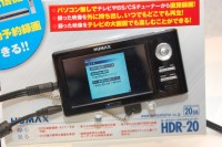また、同じくHUMAX社製の、20GB HDDを内蔵したポータブルメディアプレーヤー「HDR-20」も展示。スカパー!向けのモデルは既に発売されており、5万円前後で販売されている。720×480ドットの4型液晶を備え、MPEG4動画やMP3/WMA音声、静止画などの再生が可能。映像入出力端子も備え、外部機器から入力した映像をMPEG4にエンコードして録画することもできる。HUMAX社製のSTBと接続すると、録画開始直前にSTBから信号をHDR-20に送出して録画を開始することもでき、EPG連動録画も可能となる。