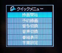 い: ワンセグ試聴時には、「QUICK」ボタンを押すと、「録画開始」「予約録画」「音多切換」「音声切換」「番組表示」「字幕設定」の各項目を素早く設定できます。
