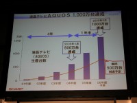 同社は今年5月、2001年に発売した液晶テレビAQUOSシリーズの累計生産台数を発表し、2006年5月に1,000万台を達成したことを明らかにしていた。片山氏はこの功績について「液晶テレビとして業界初」であることを指摘し、特に「500万台達成まで4年間を費やしてきたが、その後1,000万台達成まで約半年という猛スピードで成長してきた」ことを強調し、事業の好調ぶりをアピールした。