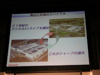 さらに片山氏は、2004年1月に稼動した亀山第一工場は「亀山ブランドを確立した」と述べ、高品位な各種デジタル放送の普及と相まって「亀山テレビ=AQUOS=フルスペック・ハイビジョン」のイメージがユーザーに定着しつつあると語った。片山氏によれば、その結果、現在国内の液晶テレビの市場では、AQUOSが45%から50%のシェアを獲得しているという。