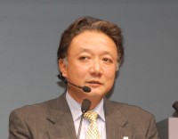 発表会では、まず同社執行役常務 デジタルメディアネットワーク社 副社長の新倉諭氏が、今年度下期の国内テレビ事業戦略について説明。新倉氏は、「国内の薄型テレビ誌上は急速に拡大しており、テレビ=薄型テレビという時代に突入した」と市場を分析。デバイス別の構成比については、「40V型では以前から9割が液晶だが、40〜50V型市場でも、直近では70%程度が液晶となり、構成比が急拡大している」とのデータを示した。