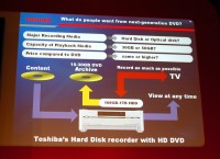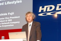 藤井氏はさらに、現在東芝がハードディスクや光記録ディスク等の記録媒体から、高性能プロセッサー「Cell」、液晶ディスプレイのデバイス等、広範な次世代エンターテインメントに関連するコア技術や製品に関わり、大きな影響力を発揮している企業であると述べた。中でもハードディスクと光記録ディスクの技術においては業界のリーディングポジションにあることを強調しながら、日本国内では「HDD搭載HD DVD録画機」のビジネスに力を入れて取り組んでいることを紹介した。