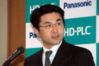 パナソニック コミュニケーションズ(株)藤吉一義氏発表会の冒頭、パナソニック コミュニケーションズ(株)代表取締役社長の藤吉一義氏は、有線LANではケーブル配線が煩雑になる、無線LANではセキュリティが甘く、遮蔽物による速度低下があるなどの問題を挙げ「電源を差し込むだけで家庭内ネットワークが構築できるPLCはこれらの問題を解決する方法だ。将来的には家庭内の家電が全てPLCでネットワーク化されるだろう」と予測した。