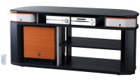 ラック部分は、YSPシリーズ一体型ラックと同じく朝日木材加工(株)製を採用。32〜46型の薄型テレビの設置に最適なサイズ(横幅110cm)で、部屋のコーナー置きが可能な形状を採用している。耐荷重は、天板50kg、棚板15kg、底板30kg(ウーファー部除く)で、総耐荷重は95kgとなっている。