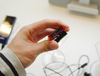 本体にはリチウムイオン充電池を内蔵し、フル充電で約80時間の連続再生ができる。充電は同時発売のSDオーディオシステム“D-dock”(関連ニュース)とのドッキングで行えるほか、PCとのUSB接続や別売りのACアダプターでも行うことができる。約3分間の充電で約3.5時間の連続再生が可能だ。