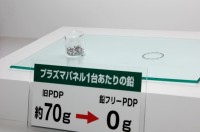 環境対策では、これまでパネル1枚あたり70g程度使用していた鉛を、新製品では完全に無くす事に成功。PDPはこれまで鉛フリー化が難しいとされてきたが、様々な工夫を重ねることで実現した。同社のプラズマパネル生産量から計算すると、年間約280トンもの鉛を削減できることになる。