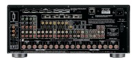 【SPEC】●定格出力:全チャンネル200W(6Ω、20Hz〜20kHz、0.05%THD、1ch駆動時) ●実用最大出力:全チャンネル280W(6Ω、1kHz、1ch駆動時、JEITA) ●全高調波歪率:0.05%(定格出力時) ●周波数特性:5Hz〜100kHz(+1dB/-3dB、Direct Mode)●SN比:110dB(LINE、IHF-A) ●トーンコントロール最大変化量:±10dB(BASS at20Hz)、±10dB(TREBLE at20kHz) ●スピーカー適応インピーダンス:4〜16Ω●入出力端子:HDMI(入力4、出力2)、D4(入力3、出力1)、コンポーネント(入力3、出力1)、Sビデオ(入力6、出力2)、コンポジット(入力6、出力3)、デジタル音声入力(光3、同軸3)、アナログ音声入力11(2ch10、7.1ch1)、デジタル音声出力1(光)、アナログ音声出力5(2ch2、Zone2、Zone3各1、7.1ch1) ●スピーカー出力端子:9(Main7ch、Zone2 2ch、バナナプラグ対応) ●ヘッドホン端子:1●RS232端子:1 ●12Vトリガー端子:出力3 ●IR端子:入力2、出力1 ●音場制御用マイク端子:1 ●Ether端子:1 ●消費電力(電気用品安全法技術基準):770W ●外形寸法:435W×194H×454.5Dmm ●質量:24.1kg