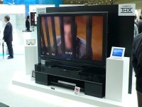 また、フルHDパネルを搭載した26V型、22V型の液晶テレビが初めて参考出品された。これまでフルHDパネルで最小だったのは32V型。今回さらなる小型化を実現した両モデルだが、その技術内容は明らかにされなかった。「あくまで参考展示。具体的な製品化の予定は今のところない」(ブース説明員)という。