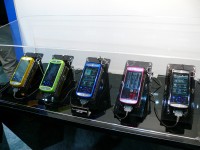 NTTドコモのブースでは、体脂肪率や口臭のチェックができる「ウェルネス携帯電話」や、キーパッドに電子ペーパーを使用したケータイなど、ユニークな展示が行われている。