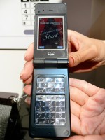 今回多くの人を引きつけたのは、参考出品されていた「ウェルネス携帯電話」の試作器。歩数計や脈拍計、体脂肪計、ブレス(口臭)の測定センサーを搭載しており、健康に関するさまざまなデータを測定・管理することができる。会場には5色のカラーバリエーションが用意されていた。iアプリによって摂取カロリーや消費カロリーのデータ管理も行える。データはネットワークを通じて家族や友人などと共有することも可能だ。歩数や消費カロリーはウィジェットでリアルタイム表示される。