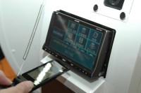 富士通テンは11月上旬に発売が予定されているECLIPSEシリーズの、4チューナー×4アンテナ方式の高感度地上デジタルテレビチューナーを内蔵した「AVN687HD」をメインに展示している。本機は高感度のチューナーをB-CASカードスロットごと内蔵し、すっきりと取り付けることができる。