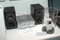 ケンウッドはDLNA機能に対応するネットワークモジュールの試作機を展示している。本機を1DINタイプのCDレシーバーと、ポータブルオーディオプレーヤー、一体型オーディオシステムに組み込んだテスト機による、無線通信のデモが行われていた。今回はプロトタイプの展示によるライフスタイル提案が行われていたが、展示説明員によれば著作権保護技術を含んだ「DLNAガイドラインVer.1.5」が一般化されれば、家庭内のPCに保存した楽曲データを、カーAVでダウンロードして楽しむという便利な使い方も可能になるということだ。