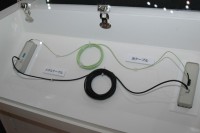 また、会場正面にはIEEE1394ケーブルを使った車内ネットワークシステムのスマートな構築提案も行われている。これまで複数の映像・音声ケーブルで送られていた車内配線がIEEE1394ケーブルで一本化できる点などがメリットとして紹介されている。