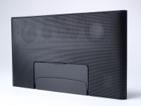 音響にこだわったというスピーカー部は、17mmの薄型デザインを採用。ユニットはトゥイーター、ウーファーによる2ウェイ構成となっている。周波数特性は140Hz〜20kHzで、最大出力は総合9W。iPodドック部は折りたたみが可能で、持ち運びにも便利だ。本体背面にはUSB端子を装備。PCと接続することで、iPodとiTunesの同機なども行うことが可能だ。