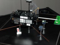 月の軌道上を周回する衛星「かぐや」に搭載された、耐環境性の高いハイビジョンカメラが特別展示された。システム内には望遠と広角の2台のカメラを装備しており、それぞれ常に地平線を撮影できる角度に調整されている。システム全体は、真空状態や放射線に耐えられる設計で、日向と日陰の300度の温度差にも対応。また、ロケット打ち上げ時の振動や衝撃に対応できる耐久性も実現しているという。