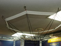 今回の技術展で「アイデア賞」を受賞したのがこの技術。傘の骨組みの各先端にマイクを装備したユニークな録音システムで、低コストで効果の高いサラウンド録音を可能にする。