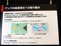 “デジタルアンプでA級のアナログアンプの音を目指す”という、ステレオプリメインアンプの技術説明、試聴デモも行われている。開発中のため詳細は明かされなかったが、これまでにない技術、駆動方法、筐体構造を採用した、本格的な製品となっているという。
