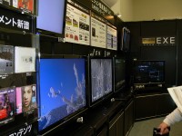 ウッドコーン採用のコンパクトコンポーネントDVDシステムについては、「EX-A3」のリミテッドモデル「EX-A3LTD」を前面に打ち出しており、“K2テクノロジー”とあわせて試聴デモを実施している。またテレビの現行製品としては、最新のLH905シリーズを大々的にアピール。高画質映像処理エンジン“GENESSAプレミアム”の効果を示すため、同機能のON/OFFを同一画面上に表示し、デモを行っている。