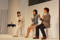 続いてイベントのゲストに招かれた長谷川理恵さん、宮舞蝠繧ウんがステージに登場。アスリートの宮浮ウんは、ステージ上で初めての“ウォーキング”を披露し、会場を盛り上げた。本日オープンしたHDR-TG1のスペシャルサイトには、今後長谷川さんや宮浮ウんをはじめとする著名人たちが撮影した動画コンテンツも掲載される予定だという。イベントで行われたトークセッションにて、HDR-TG1の使いこなし方について訊ねられ、長谷川さんは「愛犬を撮影したり、自分のマラソンのフォームをチェックするのに活用したい。野菜ソムリエの資格を持っているので、旬の野菜を使ったおすすめ料理の動画レシピなども公開してみたい」とコメント。宮浮ウんは「軽くて操作性が良いので、海外遠征に出かける時などにぜひ携えて行きたい」と語った。