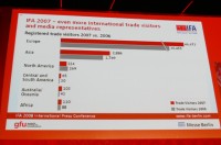 昨年開催された「IFA2007」では、トレードビジターの事前参加登録がIFA2006の成果を上回るなど、大きな成功を収めた。殊に昨年のイベントでは欧州各国から多くのトレードビジターが訪れたことなどから、今年は欧州トレードビジター向けのIFAツアーパッケージを強化する方針もGoeke氏より発表された。