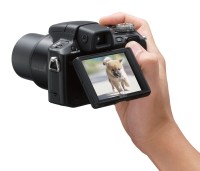 3.0型クリアフォト液晶プラスを採用した上下90度可動式のマルチアングル液晶モニターを搭載。筐体はブラックとシルバーの2色を用意している。ブラックカラーのボディにはレザープロット(皮しぼ塗装)を施したほか、シルバーカラーのボディにはレンズリングとグリップ部分にダークグレーを配色し、質感を高めている。また、防汚性に優れた「UVハードコート」を施し、スポーツなどのアクティブなシーンや旅行先での撮影も快適に行うことができるという。