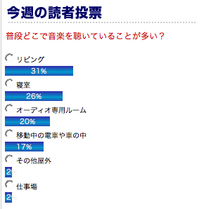 リビングと寝室で音楽鑑賞をする人が5割超 −「今週の読者投票」結果発表(4/22〜4/28)